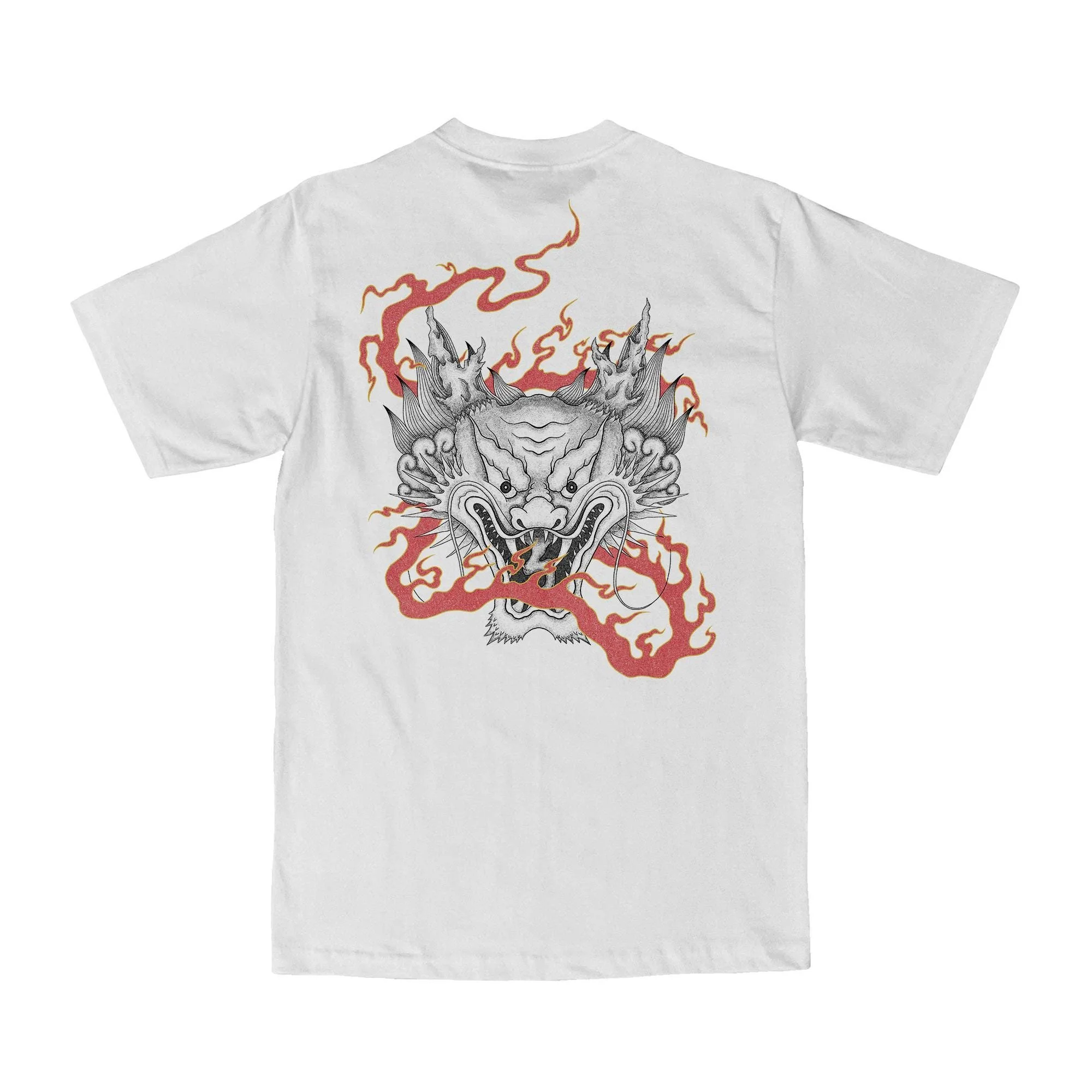 Chinese Dragon and Fire Artwork Design Heavyweight Unisex Short Sleeve Tee