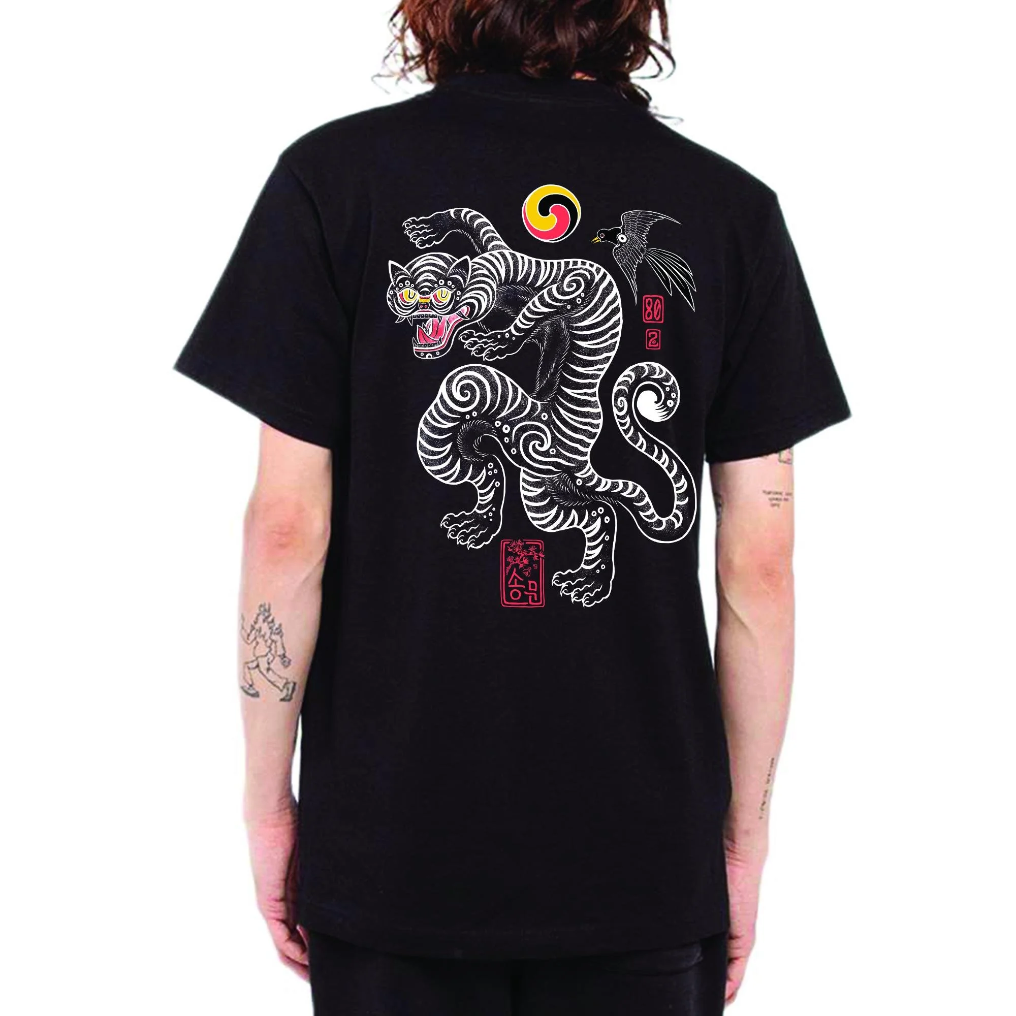 Dancing Korean Tiger and Magpie Artwork Design Heavyweight Unisex Short Sleeve Tee