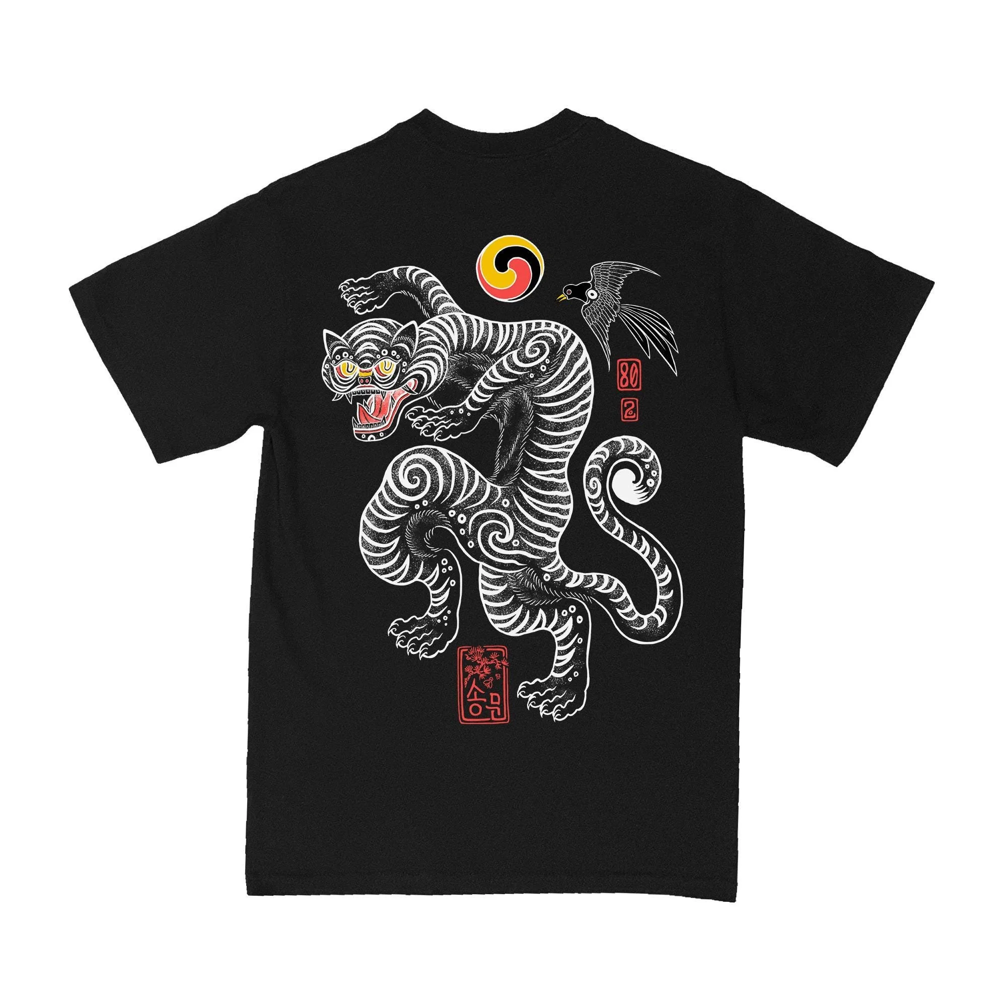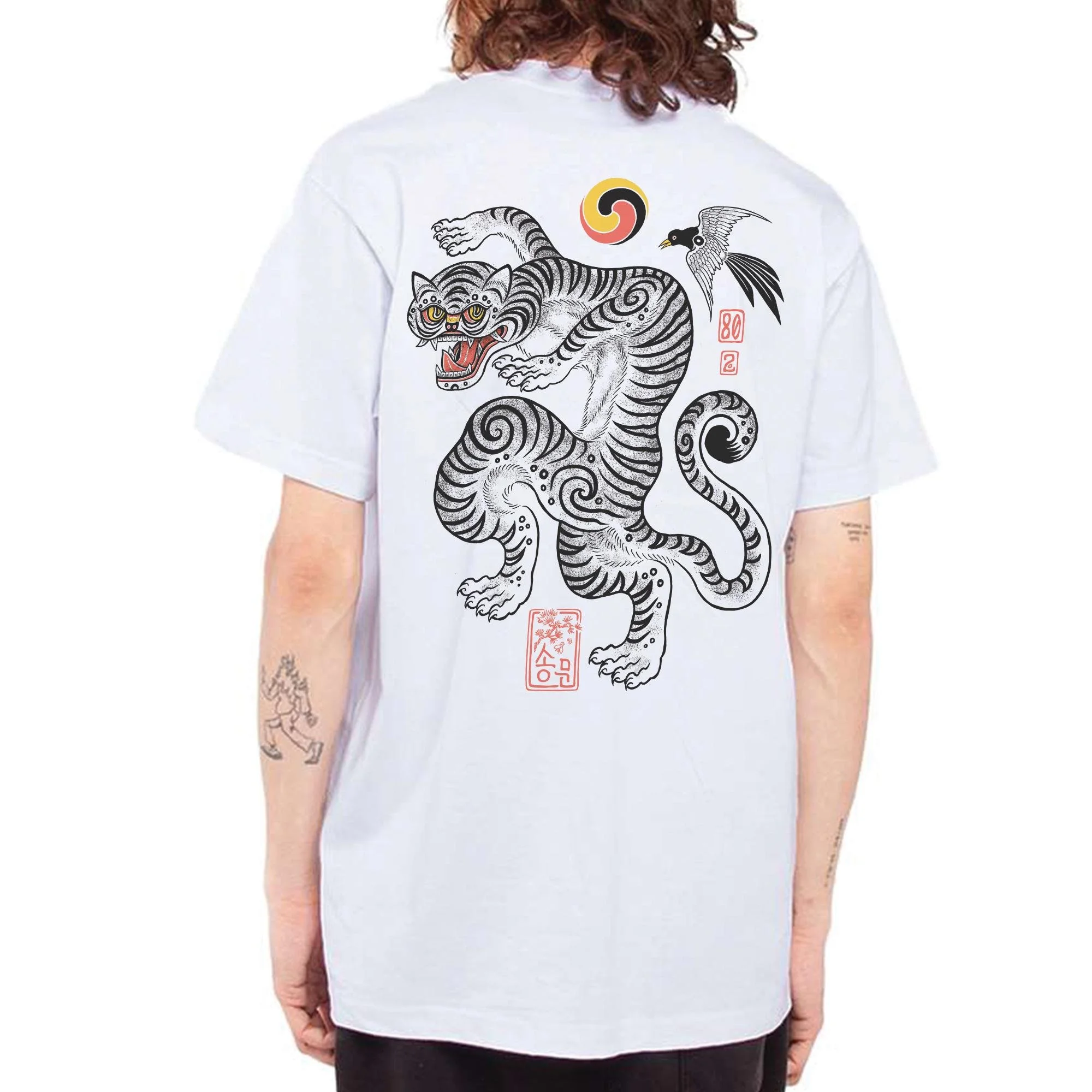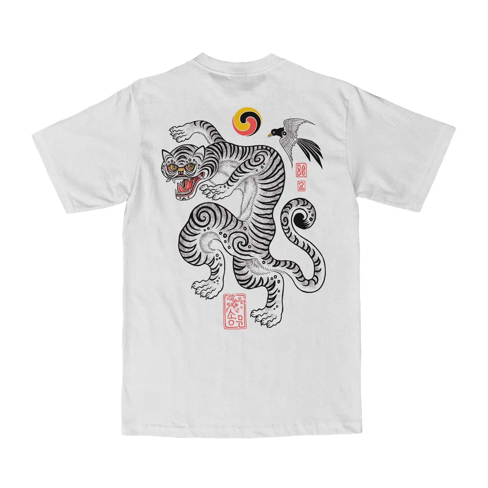 Dancing Korean Tiger and Magpie Artwork Design Heavyweight Unisex Short Sleeve Tee