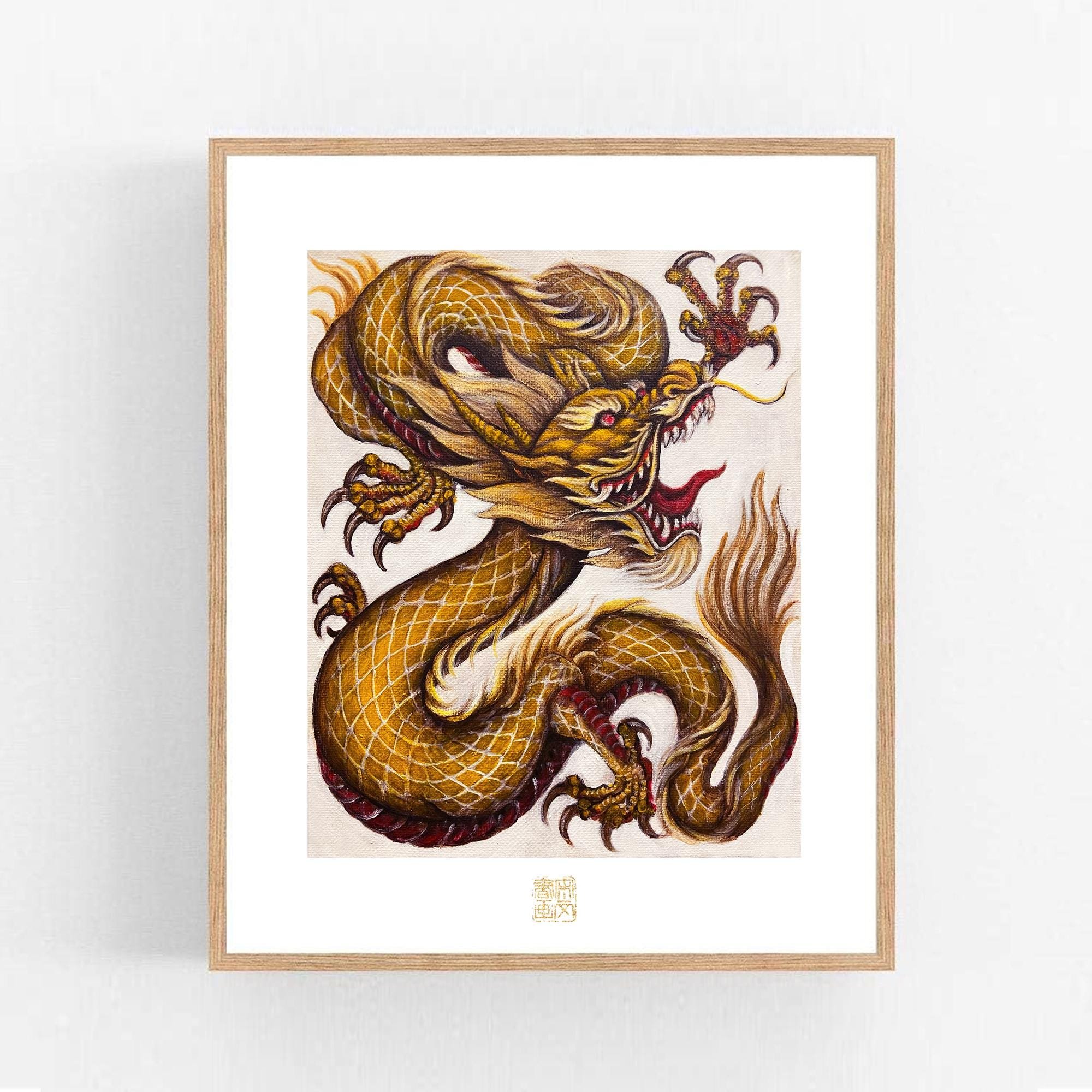 Golden Dragon Acrylic Painting Archival Matte Paper Print