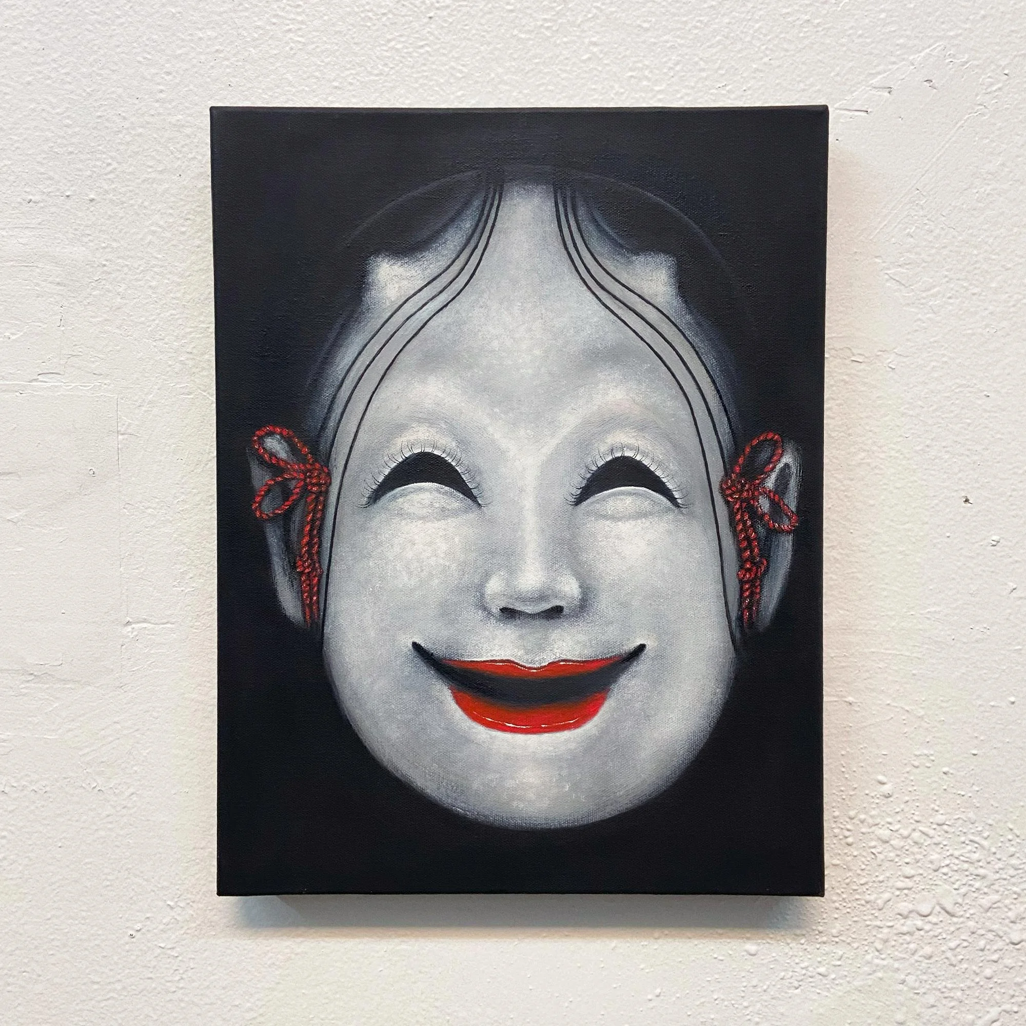 Japanese Noh Kabuki Mask Oil on Canvas Original Painting