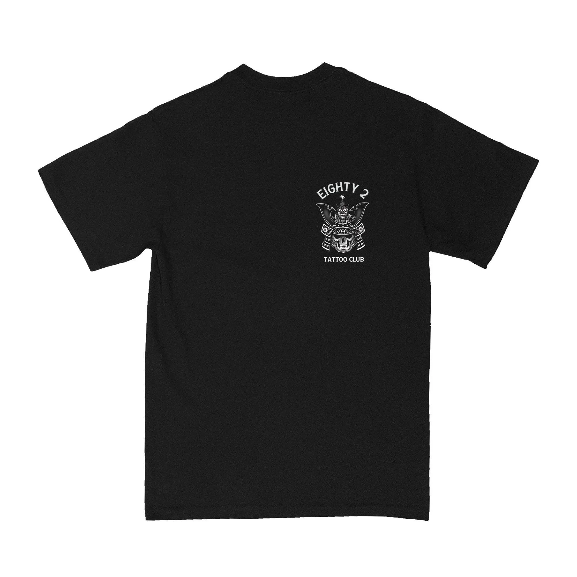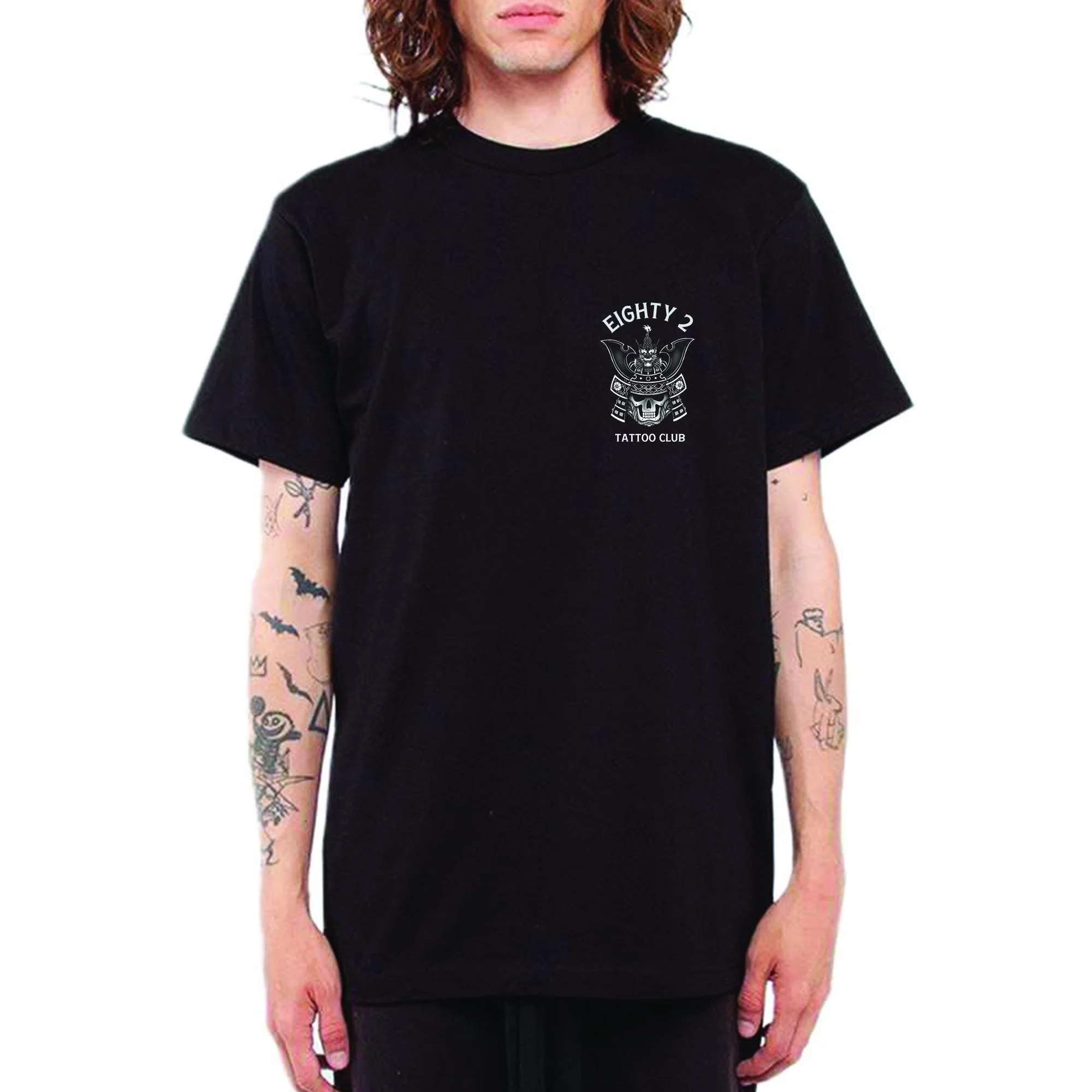 Japanese Samurai Eighty2 Tattoo Club Design Heavyweight Unisex Short Sleeve Tee printed in an Eco-Friendly Water Based Ink