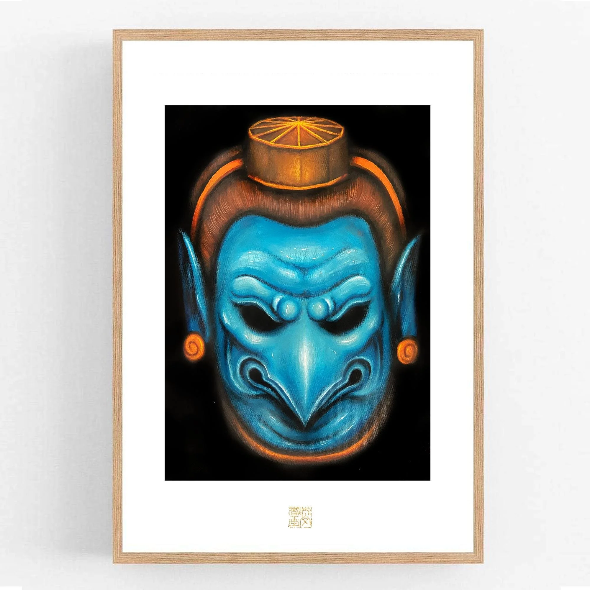 Japanese Tengu Mask Oil Painting Archival Matte Paper Print