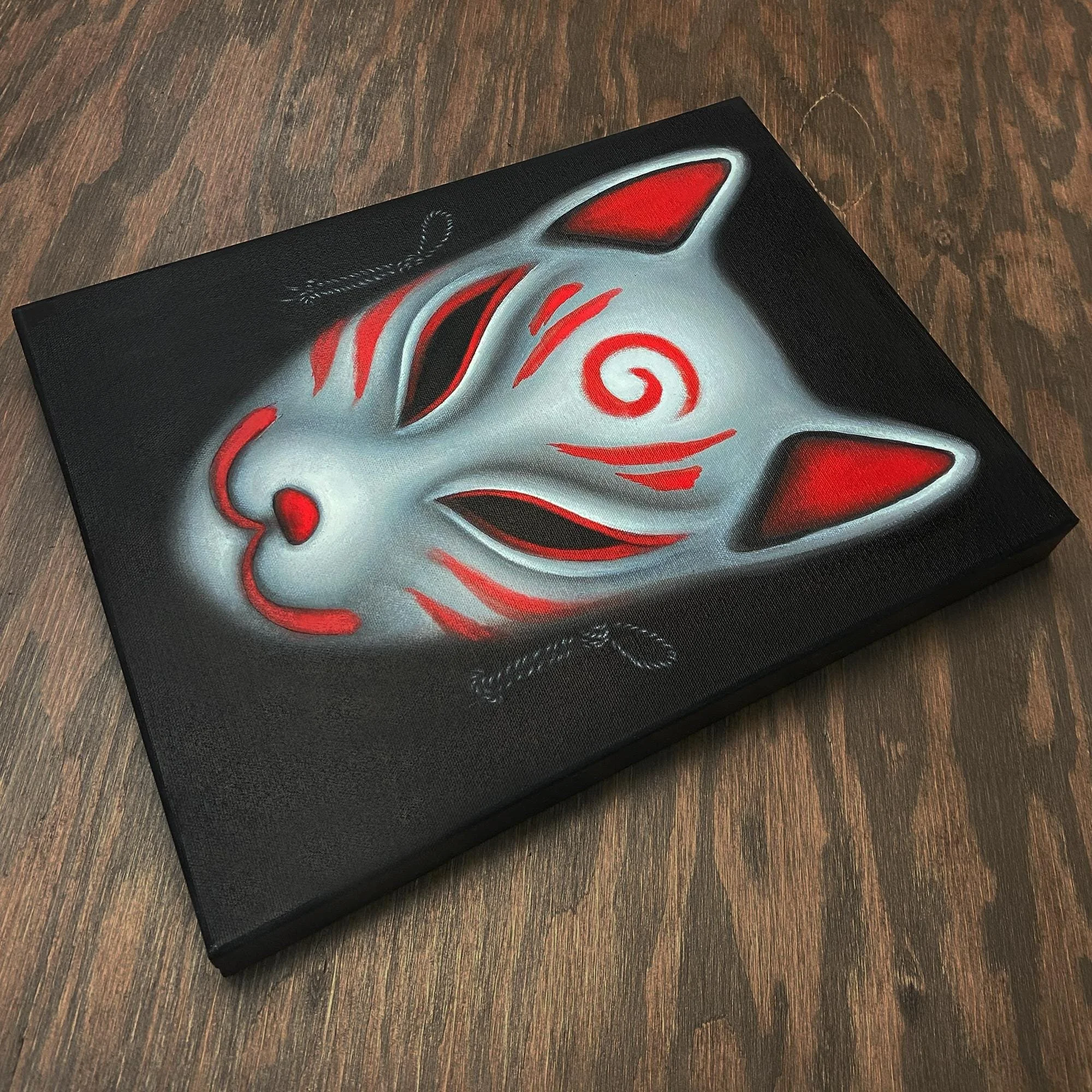 Kitsune Kabuki Mask Oil on Canvas Original Painting